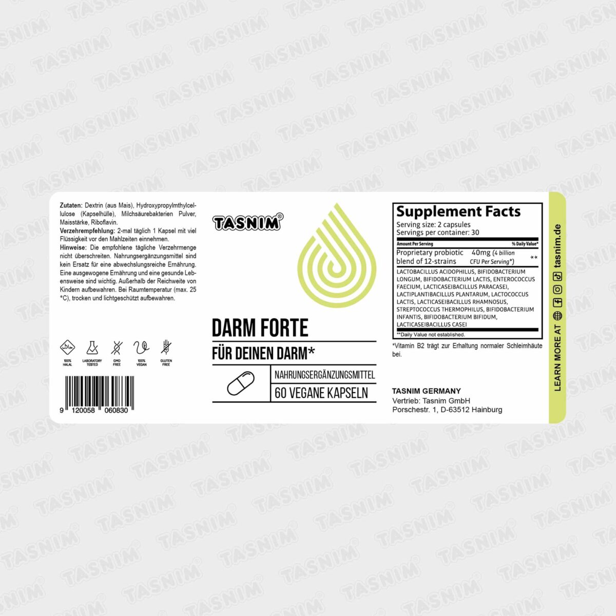 Darm Forte enthält sorgfältig ausgewählte Milchsäurekulturen sowie Vitamin B2. Vitamin B2 trägt zur Erhaltung normaler Schleimhäute bei – ein wichtiger Bestandteil für das allgemeine Wohlbefinden.