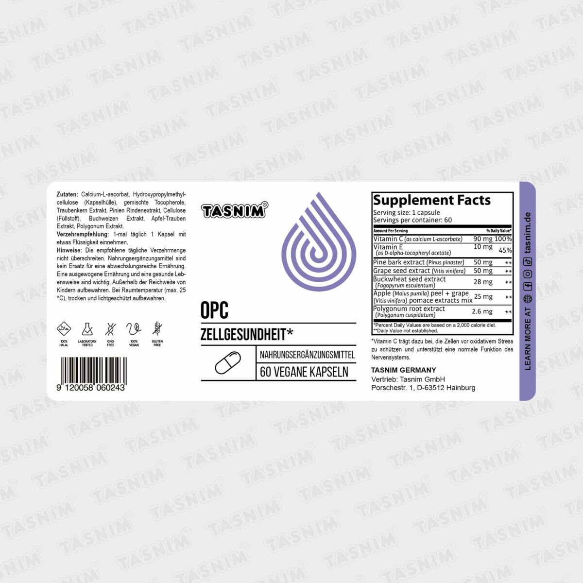OPC + Vitamin C ist ein pflanzenbasiertes Nahrungsergänzungsmittel, das einen Traubenkern-Extrakt mit bioaktiven Pflanzenstoffen wie Rutin und Resveratrol sowie Vitamin C kombiniert. Es wird aufgrund seines hohen Gehalts an Polyphenolen und Antioxidantien geschätzt.